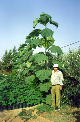 beginning with a stock of P. tomentosa and P. elongata, we selected trees based on such characteristics as branching pattern, canopy shape, leaf size, drought tolerance and rate of growth. These two new varieties, along with the mother cultivars, are now propagated in vitro in our lab. Please contact us if you would like to order Paulownia trees for timber production or landscaping projects.